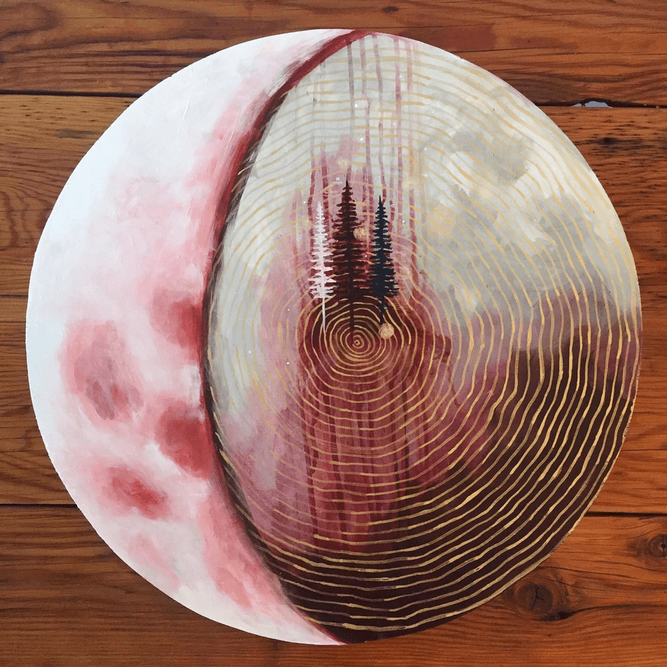Created entirely in 2016 after several months of climbing Mount Tabor nearly every day during a period of intense interpersonal unraveling, these works reflect the passage of time and renewal of love found in communion with the other-than-human people known as trees. Some abstract, some more literal, all seek to at once ground and uplift the viewer. All pieces are finished with archival UV-resistant spray. Below are the works that were available for purchase as of March 8th. I do ship internationally. Shipping in the US will cost about $12 for smaller works, $30 for the medium sized canvases and the larger canvases (30"x40" and up) will cost approx. $100 to ship domestically. Please contact me to purchase